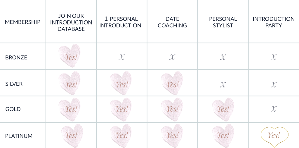 Join our database for free! Then select your membership (Siler, Gold, Platinum) to start getting Introductions!